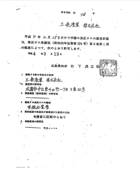 ・昭和35年11月7日 広島ガス㈱の社長の申し入れに応じ、ビニールパイプの製造工場を引き受け、三泰化学㈱を設立
